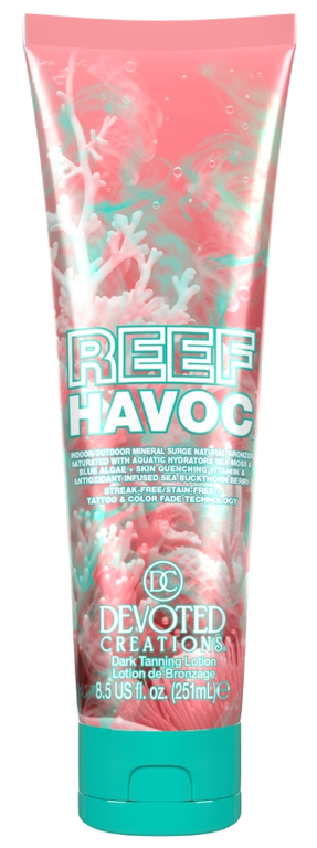 Leiskis nešamas spalvos bangų su „Devoted Creations Reef Havoc™“! Šis mineralais turtingas bronzantas, praturtintas vandenyno ingredientais, suteikia saulės nubučiuotą atspalvį be DHA, todėl yra nepakeičiamas pasirinkimas tiek naudojant patalpose, tiek lauke. Jokių dryžių, jokio nusitepimo – tik tolygus, paplūdimio įdegio rezultatas kiekvieną kartą.